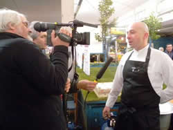 そしてモデナからは注目の人マッシモ・ボットゥーラ氏。今年の秋に始めてミシュラン3つ星を獲得。すべてのイタリアンレストランガイドで最高点の評価を持つ今最も注目されている『ラ・フランチェスカーナ』のシェフ。TVのインタヴューで饒舌なトークをしているボットゥーラ氏の横で黙々とスープを仕上げているのはシェフの右腕、徳吉洋二氏。